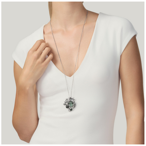 Questo pendente è un gioiello in argento fortemente materico, con texture che regalano una straordinaria lucentezza, e racconta...
